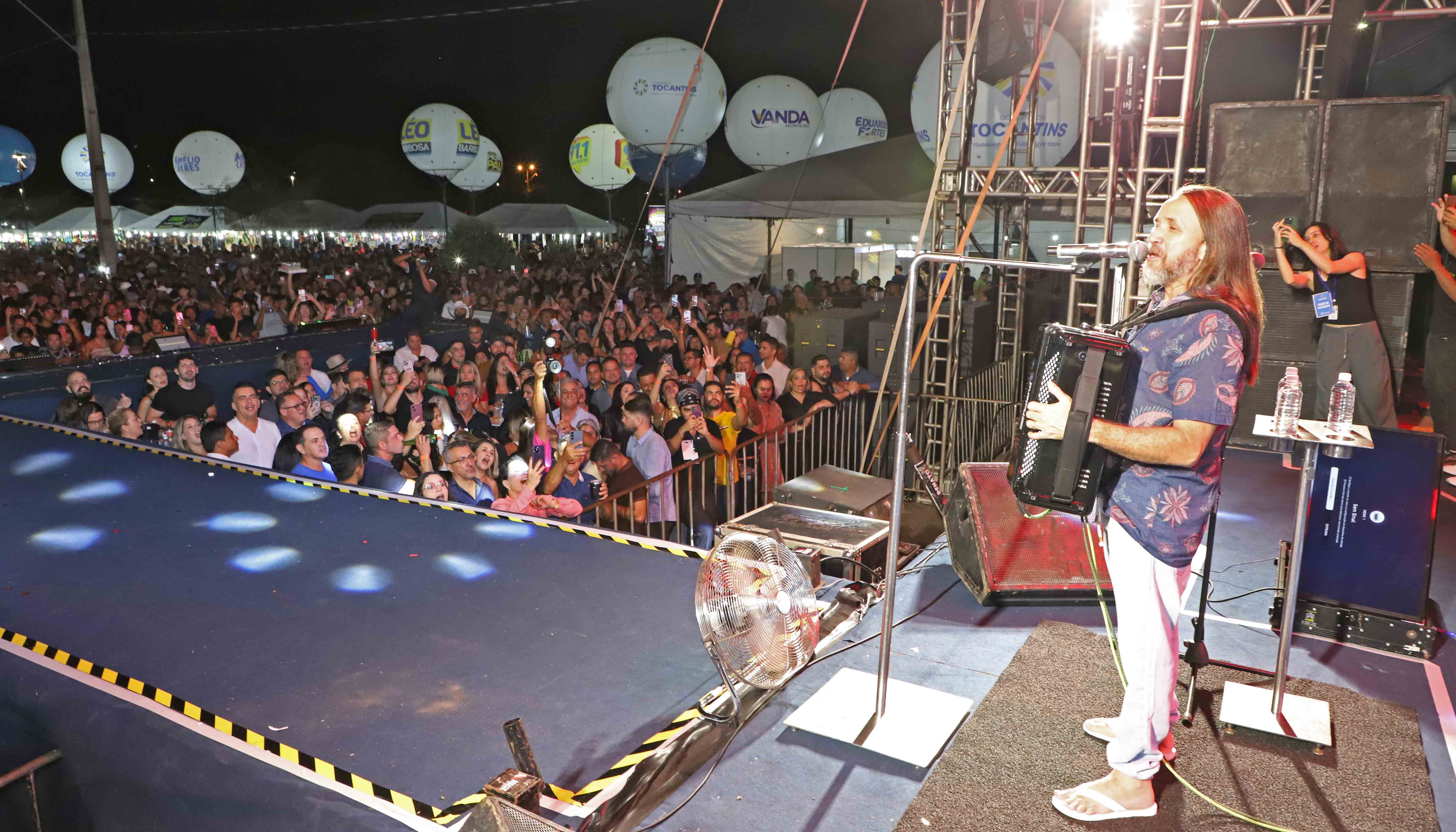 Uma das grandes atrações da noite, Dorgival Dantas não deixou de expressar sua alegria em fazer parte da abertura da 24ª edição da Agrotins – Márcio Vieira/Governo do Tocantins file_download